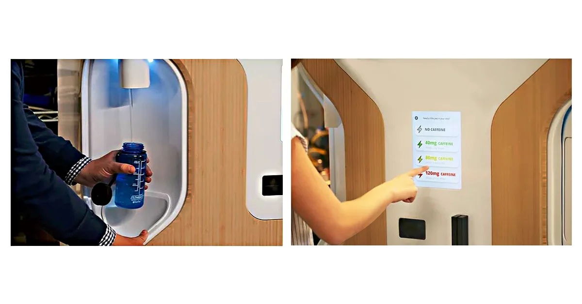 The Drop Water vending machine stands out as a modern kiosk that strikes optimistic futurism, eco-consciousness and cleanliness. With a touch-screen interface and easy-to-use software app, users are able to intuitively choose their fresh water option.